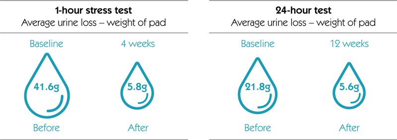 - 86% of users were classified as completely "dry" after 12 weeks *