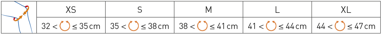 To calculate the size, measure the circumference of the knee in a semi-flexed position by placing the tape measure in the center of the patella.